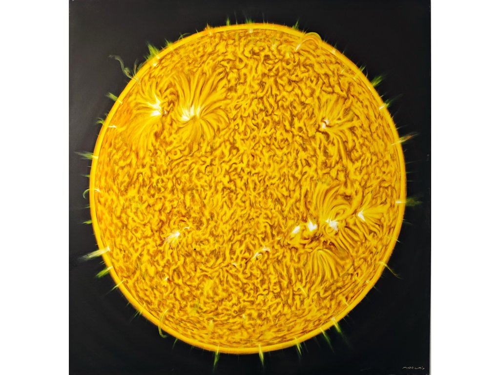 Tento obraz od Jiřího Eliáše vychází z reálných astronomických snímků a zachycuje fyzikální podstatu planety – proudění energie, strukturu povrchu a surovou krásu kosmu bez idealizace.