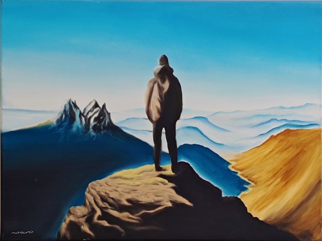 Pod ním se krajina rozplývala v mlze, jako vzpomínky, které už není potřeba držet. Hory v dálce nepůsobily jako překážky. Spíš jako výzva. Nebo možná jako připomínka, že každá cesta má svůj směr, i když ho zrovna nevidíme.