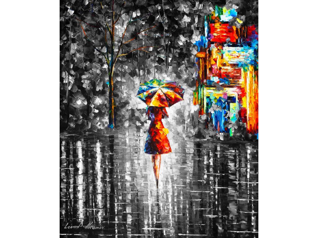 RAIN PRINCESS WITH UMBRELLA BW - Duhová dáma - reprodukce Leonida Afremova