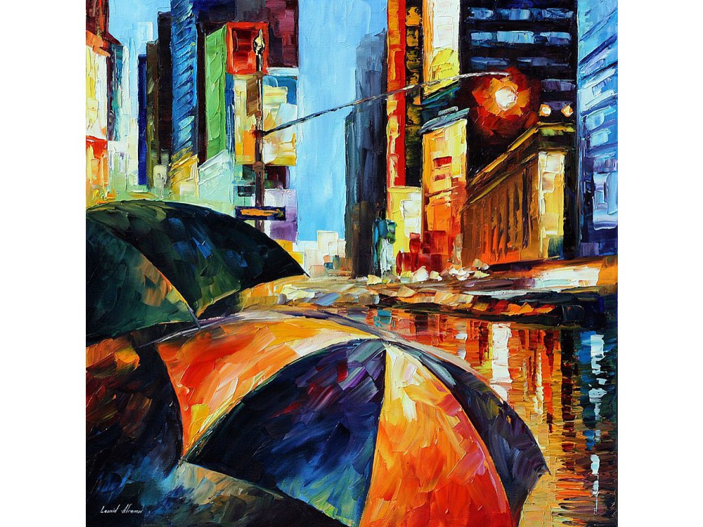 RAIN ON TIMES SQUARE - Deštníky na křižovatce - reprodukce Leonida Afremova